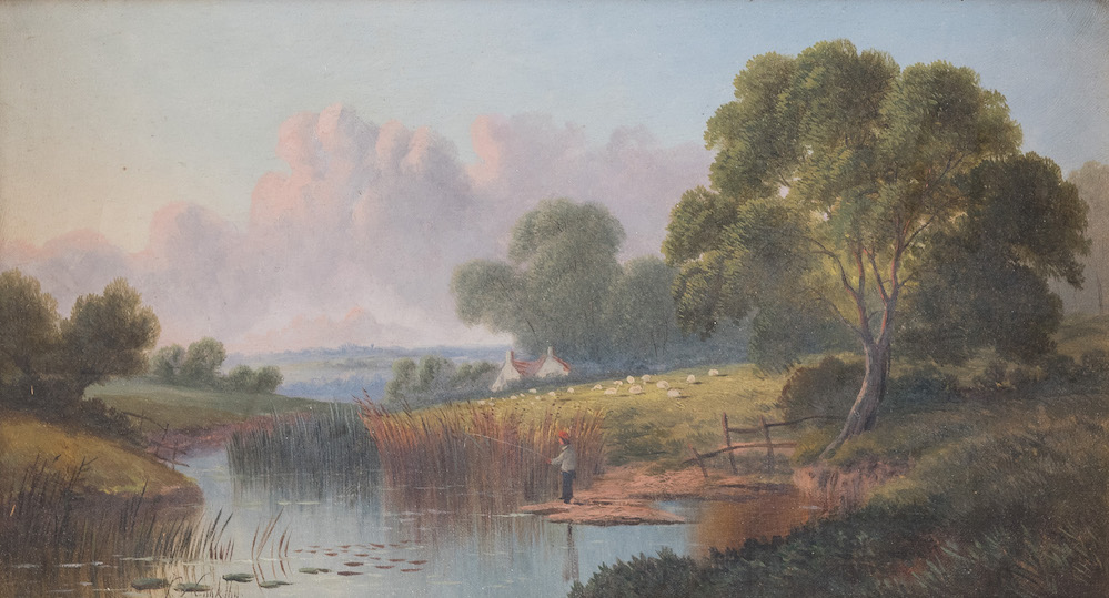 JAMES BARHAM COOK (XIX-XX) "Paesaggio fluviale". Cm 26x46,5. Opera firmata in...