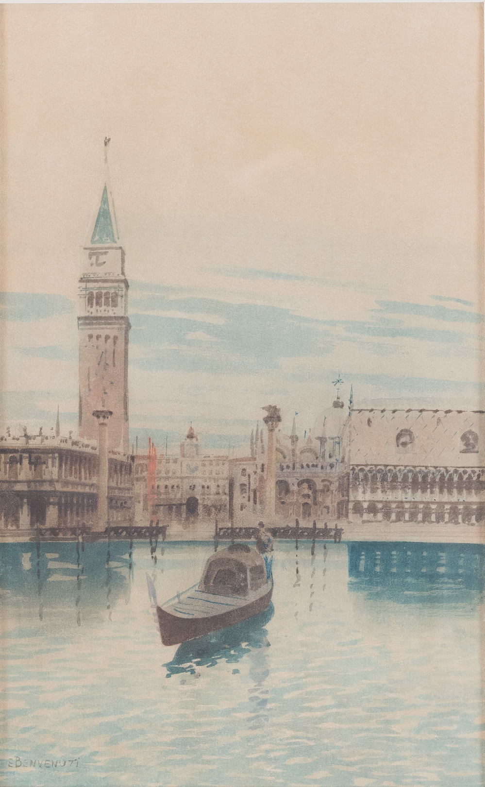 EUGENIO BENVENUTI (Venzia 1881 -1959) “San Marco, Venezia”. Acquerello su...