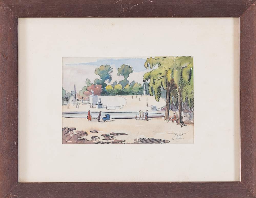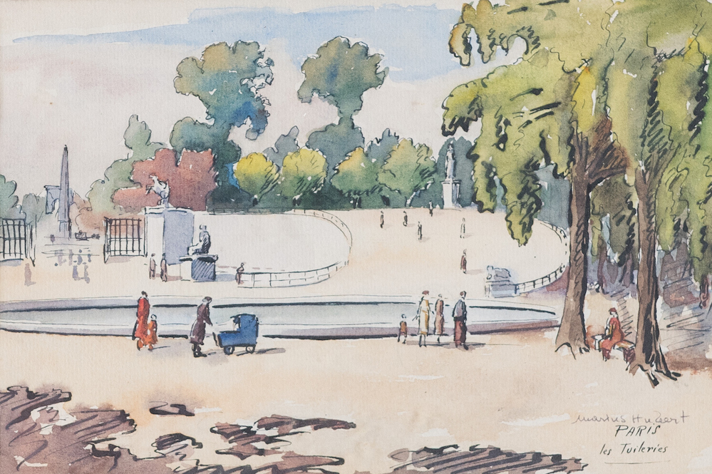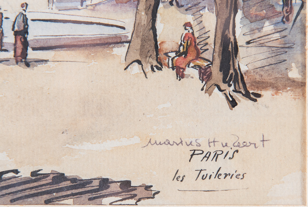 MARIUS HUBERT ROBERT (Parigi 1885 -1966) “Paris, le toileries”. Acquerello su carta. Cm 16x23,5. Opera firmata e intitolata in basso a destra Marius Hubert.