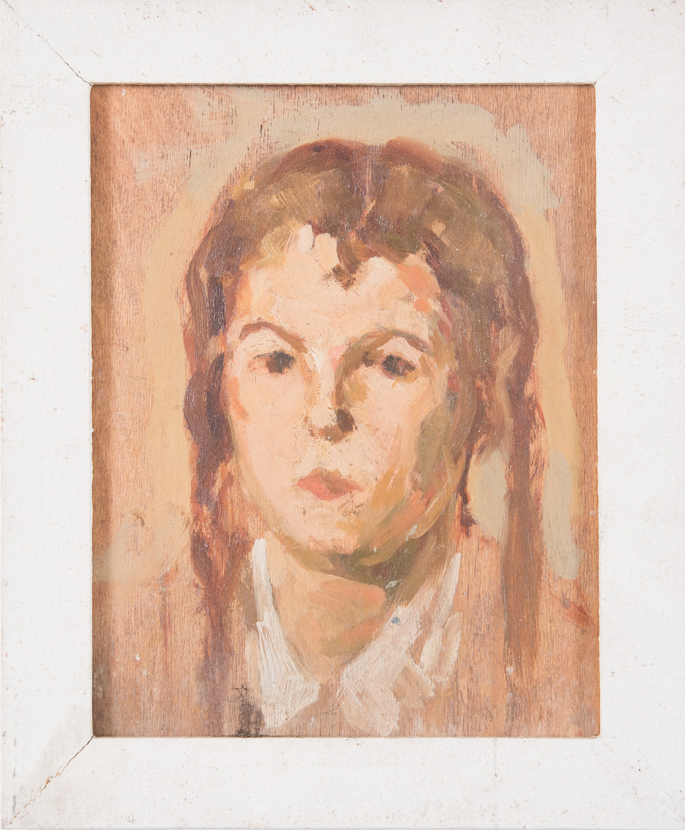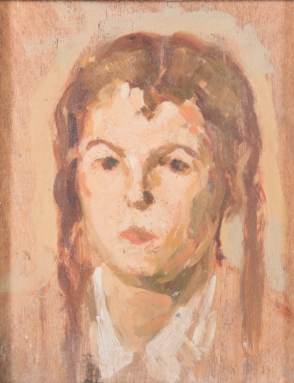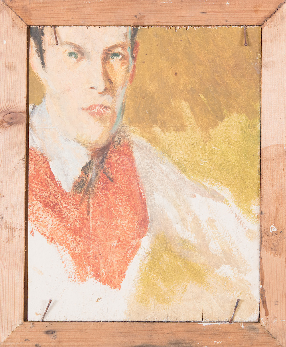 Pittore anonimo del XX secolo. “Ritratto” Olio su tela. Cm 27,5x21,5. Opera rectoversa.