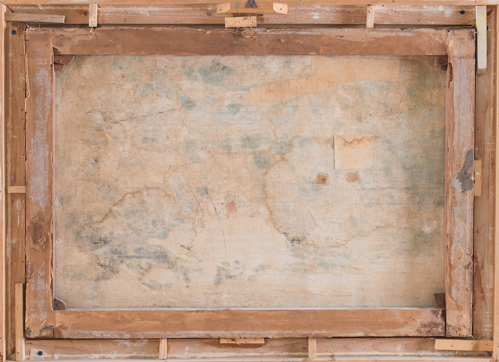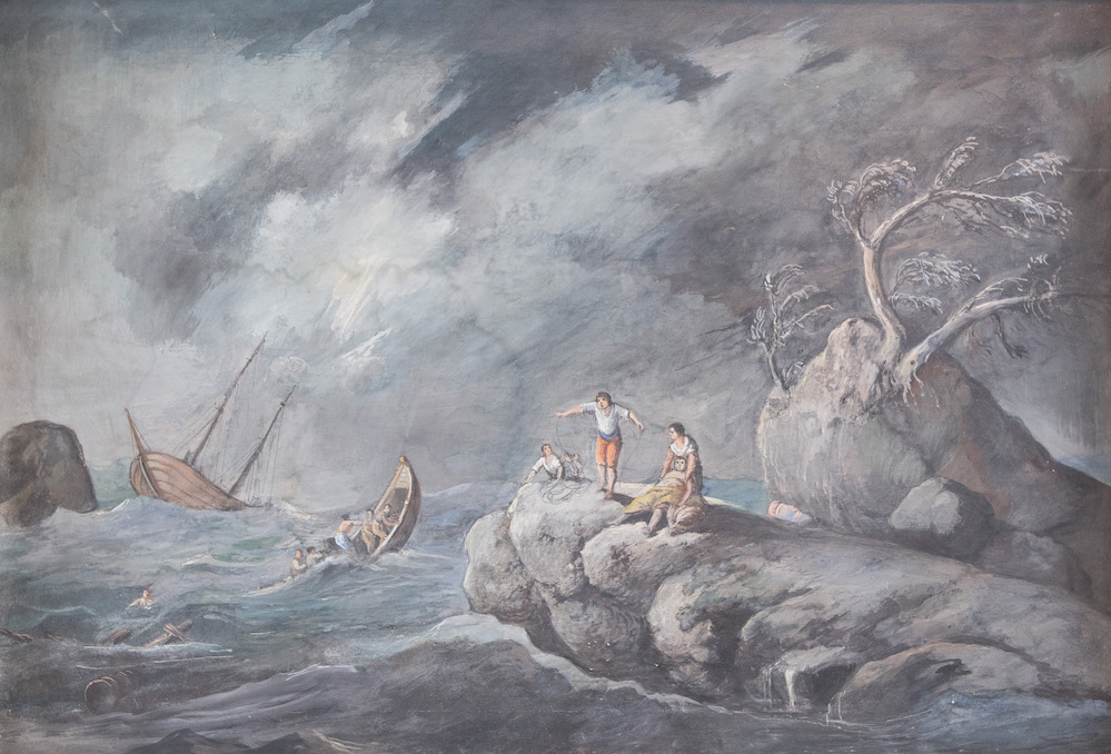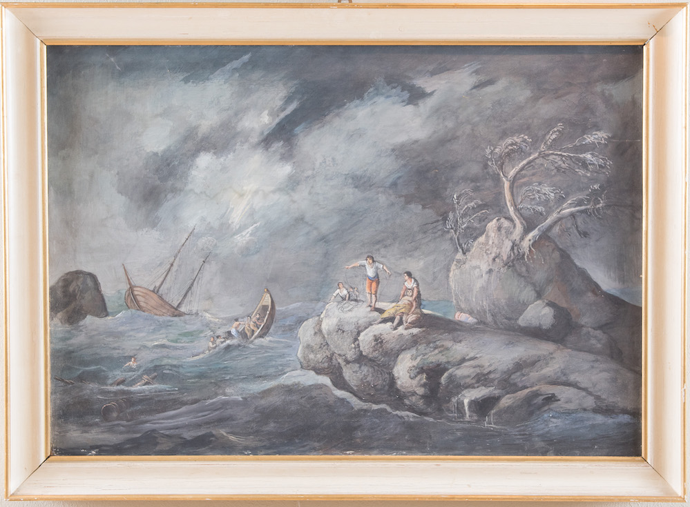 Maestro del XIX secolo. "Marina in tempesta". Olio su tela. Cm 65,5x94,5.
