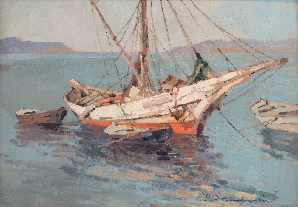 Lot 220 | CARLO DOMENICI "Peschereccio". Olio su tavola. Cm 35x50. Opera firmata in...