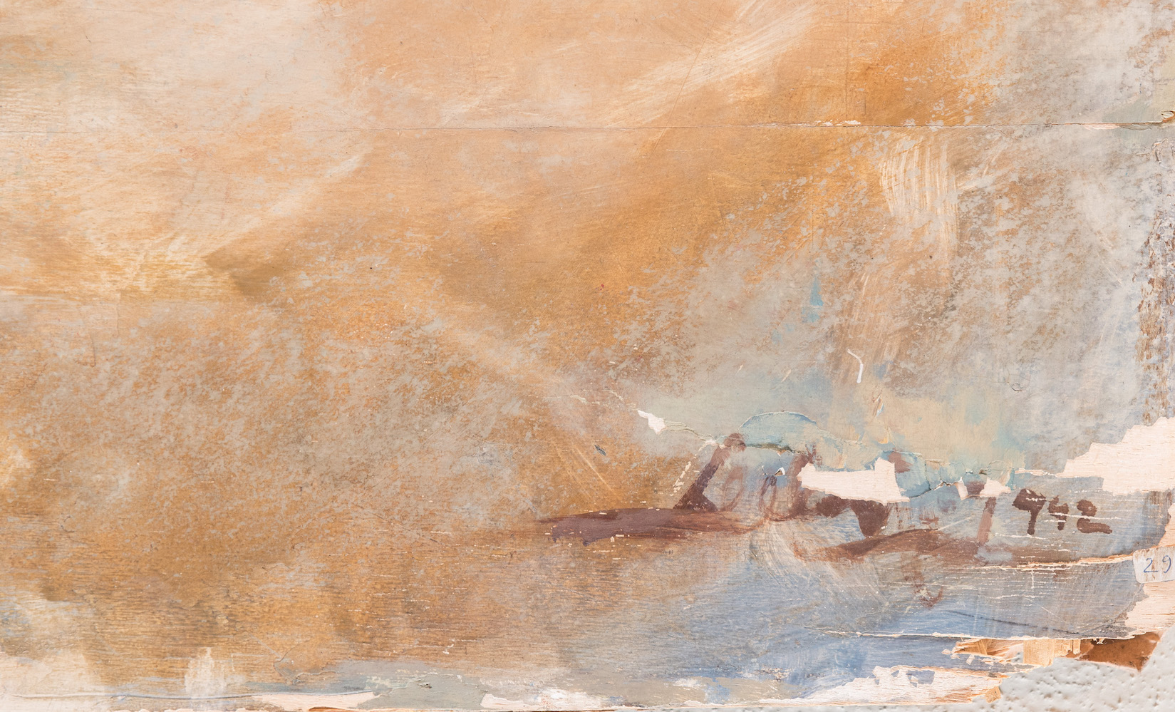 Pittore del XX secolo. "Grande nudo disteso", 1942. Olio su tavola. Opera firmata e datata in basso a destra 1942 con firma non decifrata.