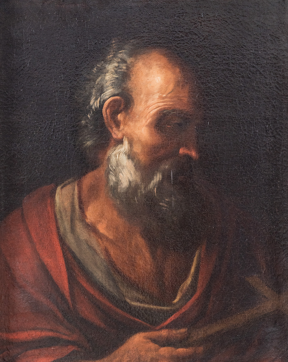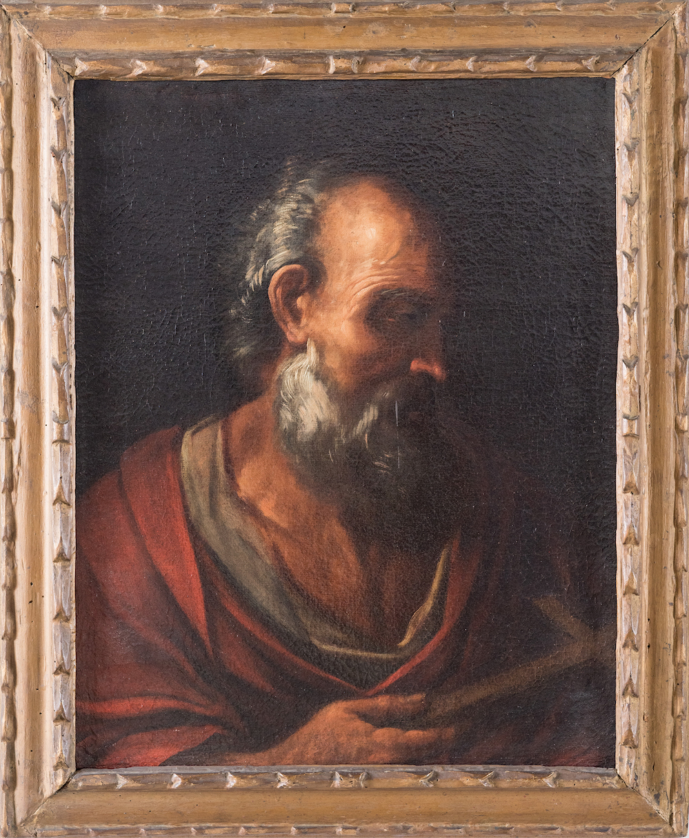 Maestro del XVII secolo. "Santo". Olio su tela. Cm 63x50.