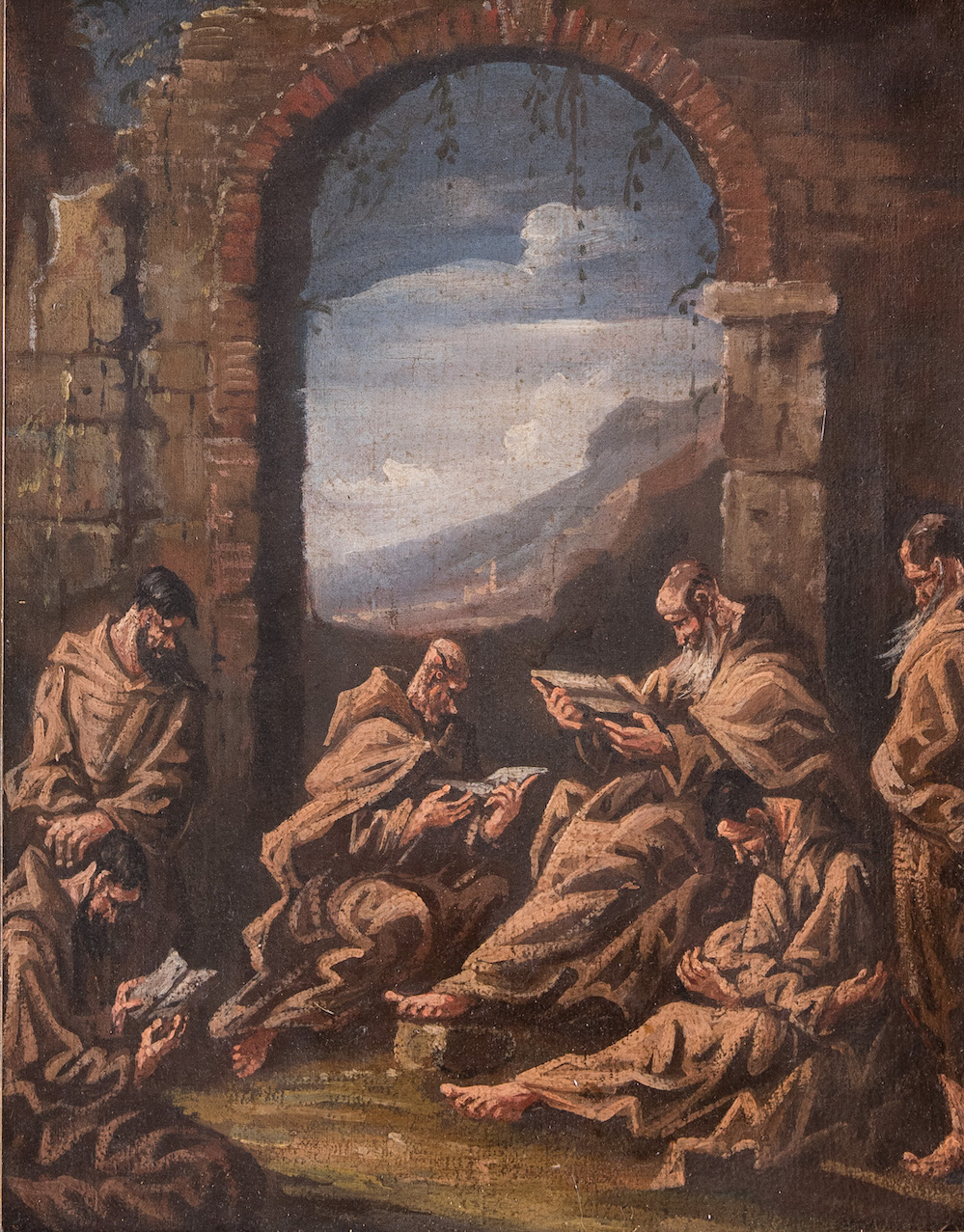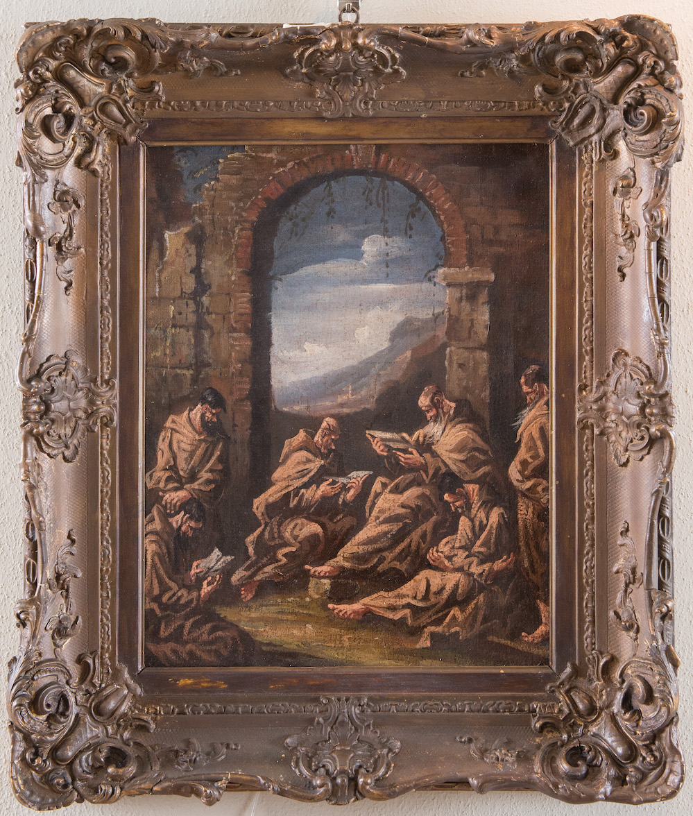 Ambito di Alessandro Magnasco "Frati in preghiera". Olio su tela. Cm 45x35.