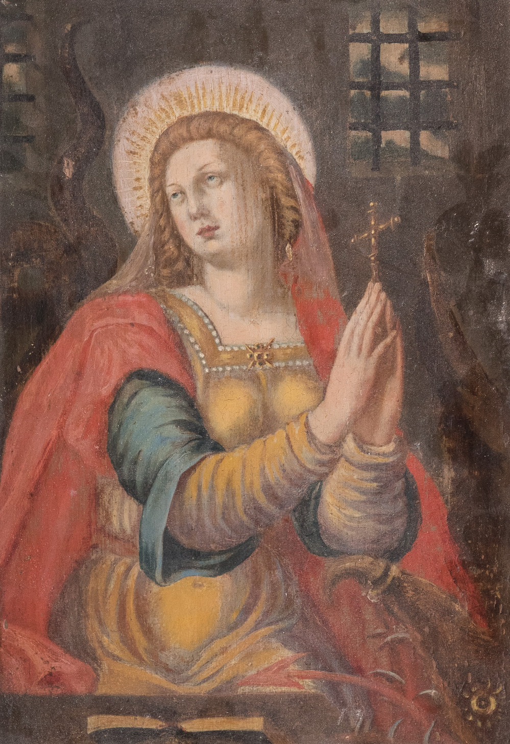 Pittore anonimo del XVII secolo “Le tentazioni di una santa”. Olio su tavola. Cm 32x21,5.