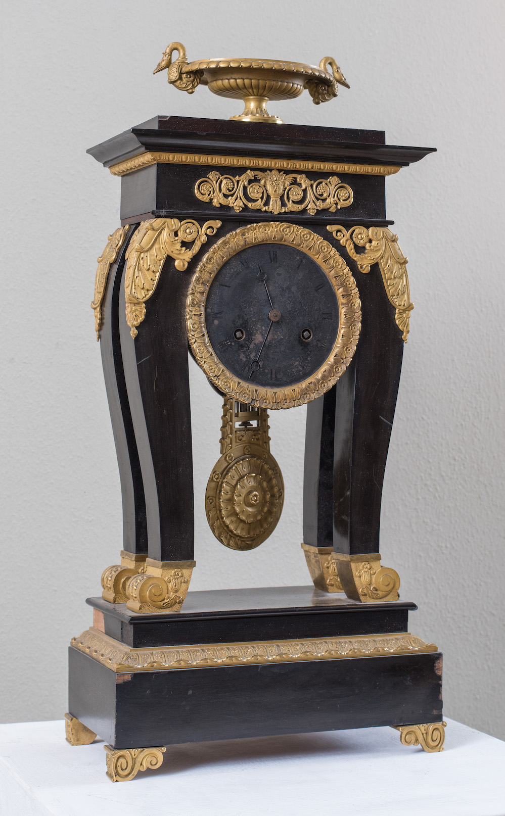 Orologio a portico in legno ebanizzato e bronzo dorato. Seconda metà del XIX...