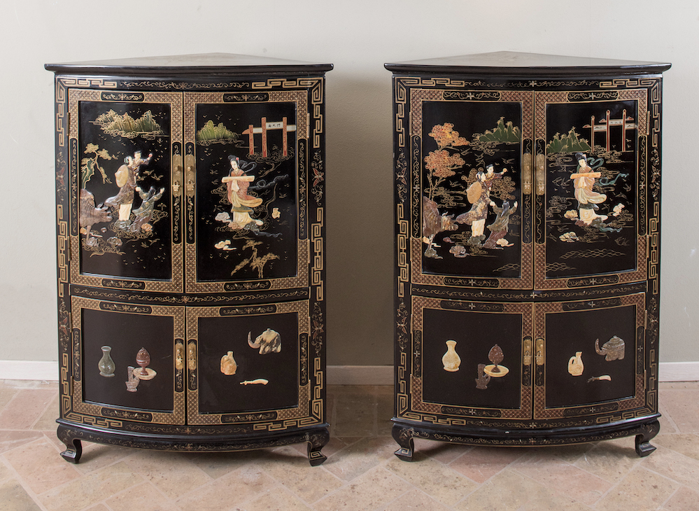 Lot 289 | Coppia di cantonali orientali. Cina, XX secolo. Laccate in nero con...