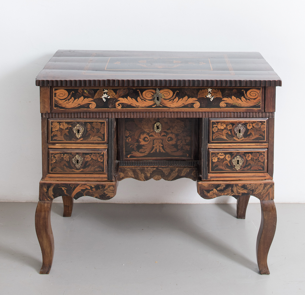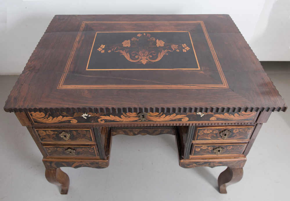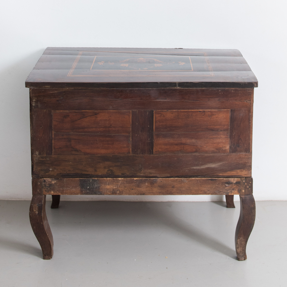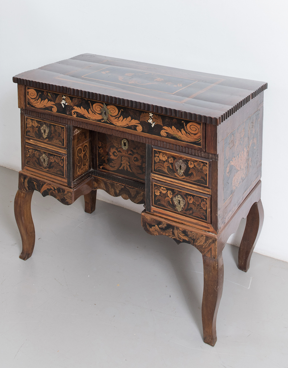 Scrittoio da muro. Inghilterra, metà del XVIII secolo. Lastronato e intarsiato in palissandro e legni pregiati. Cm 79x96x54,5. (difetti e restauri)