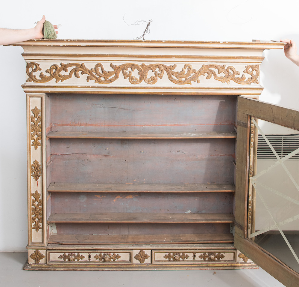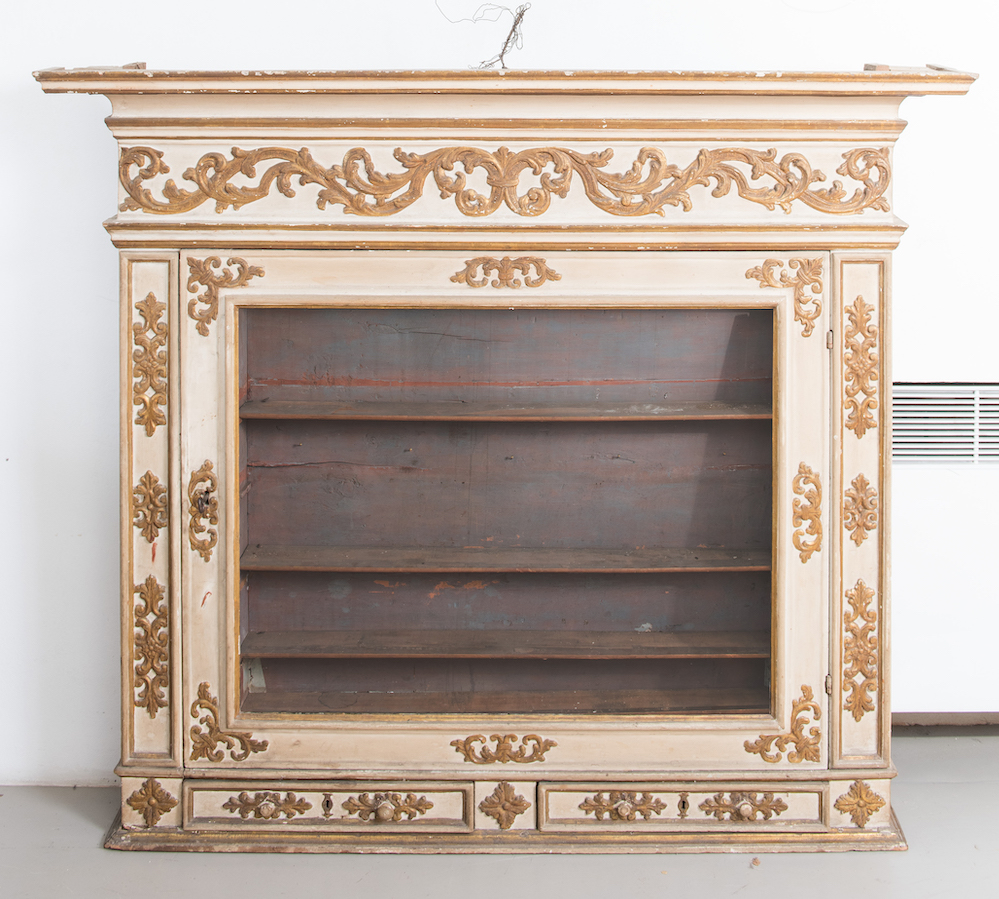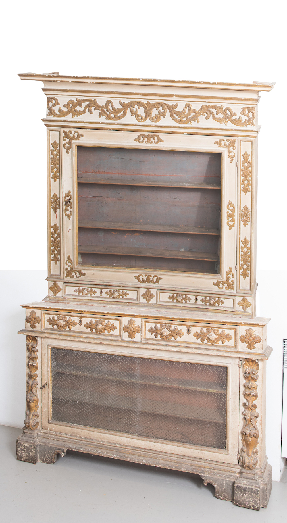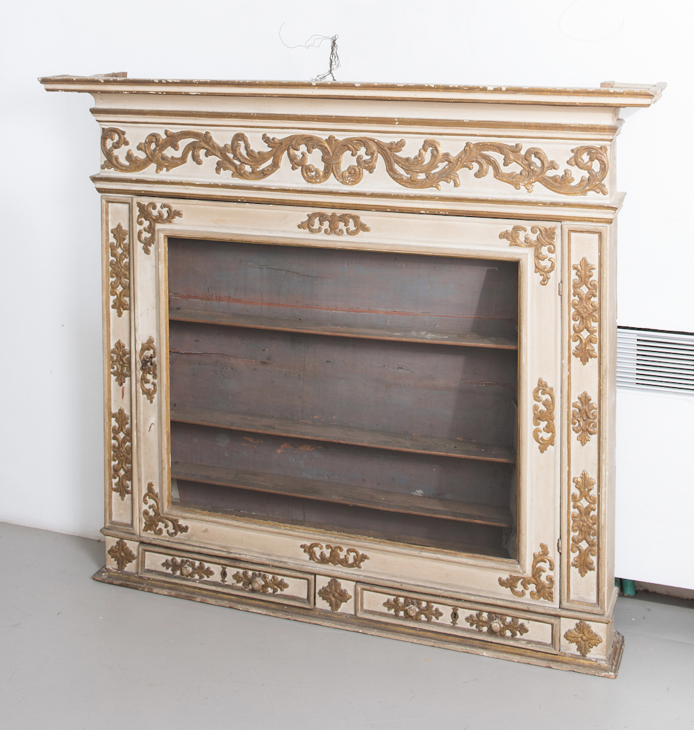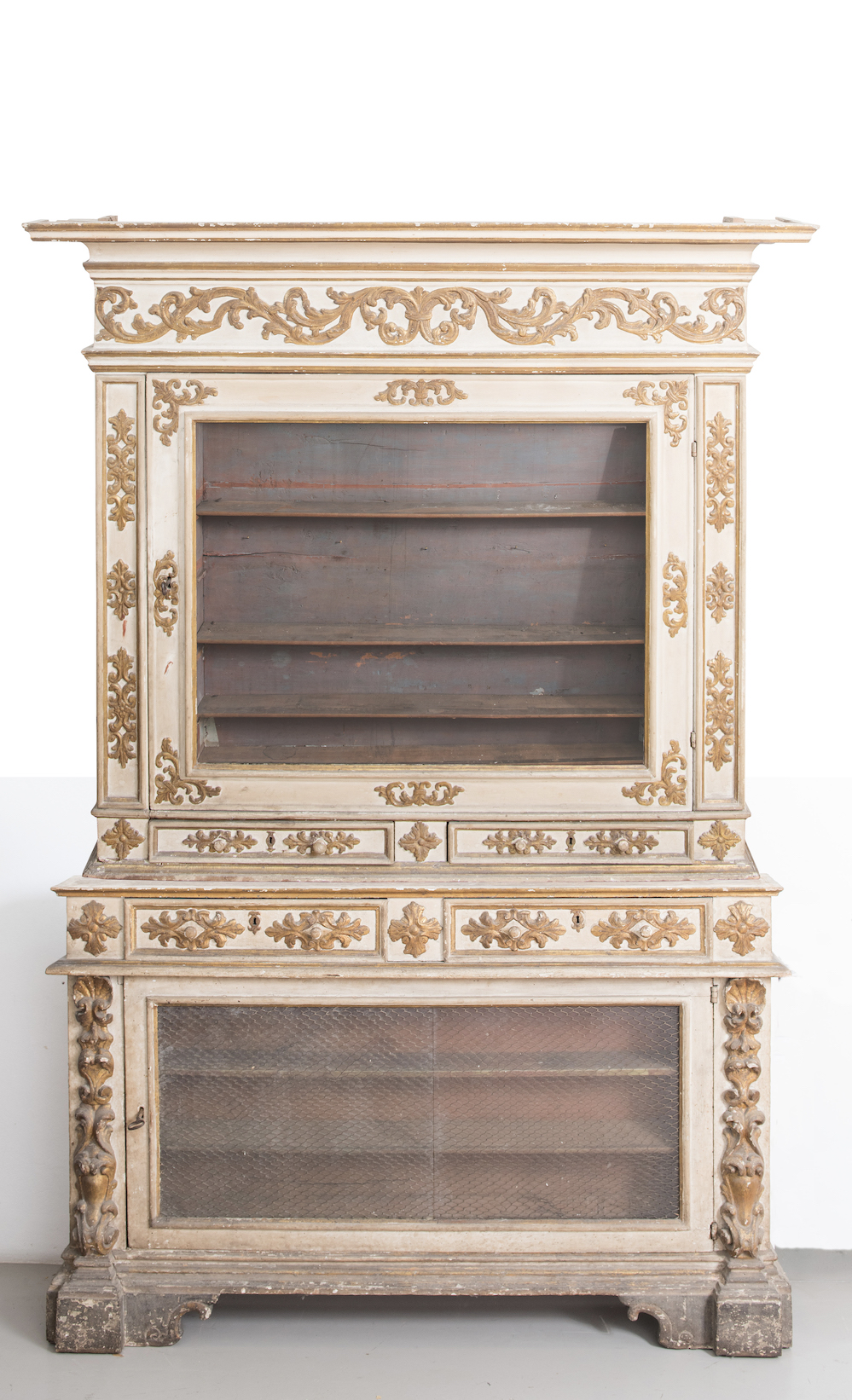 Mobile vetrina in legno intagliato laccato e dorato. Fine XVII secolo - inizi...