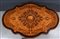 Elegante tavolo da salotto, in massello di noce. Italia, seconda metà del XIX secolo. Con piano lastronato ed intarsiato in acero e palissandro. Elegante grifone intarsiato al centro, inconiciato da volute fitomorfe. Cm 81x127x80. (difetti)