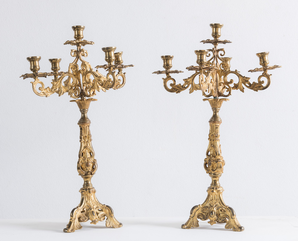 Lot 342 | Coppia di candelabri in bronzo dorato. Seconda metà del XIX secolo. Cadauno...