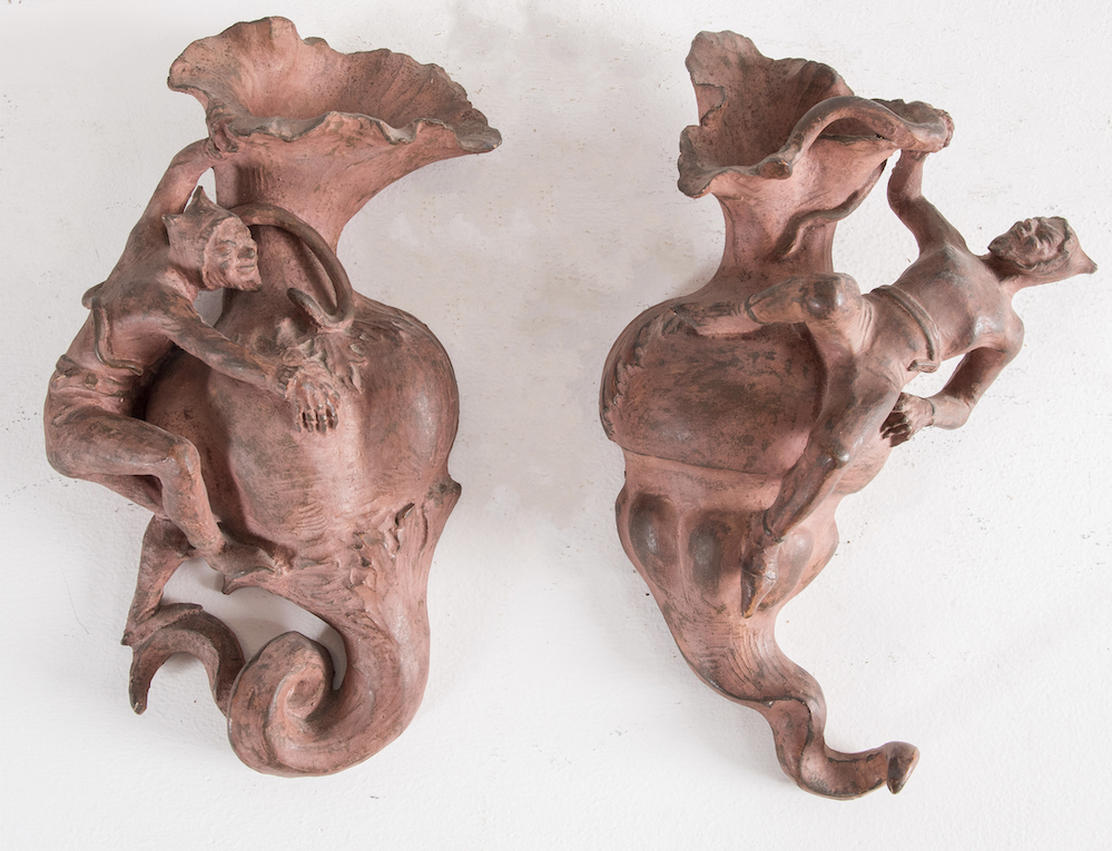 Lot 345 | ANGELO MINGHETTI, Bologna, XX secolo. Coppia di sculture in terracotta,...