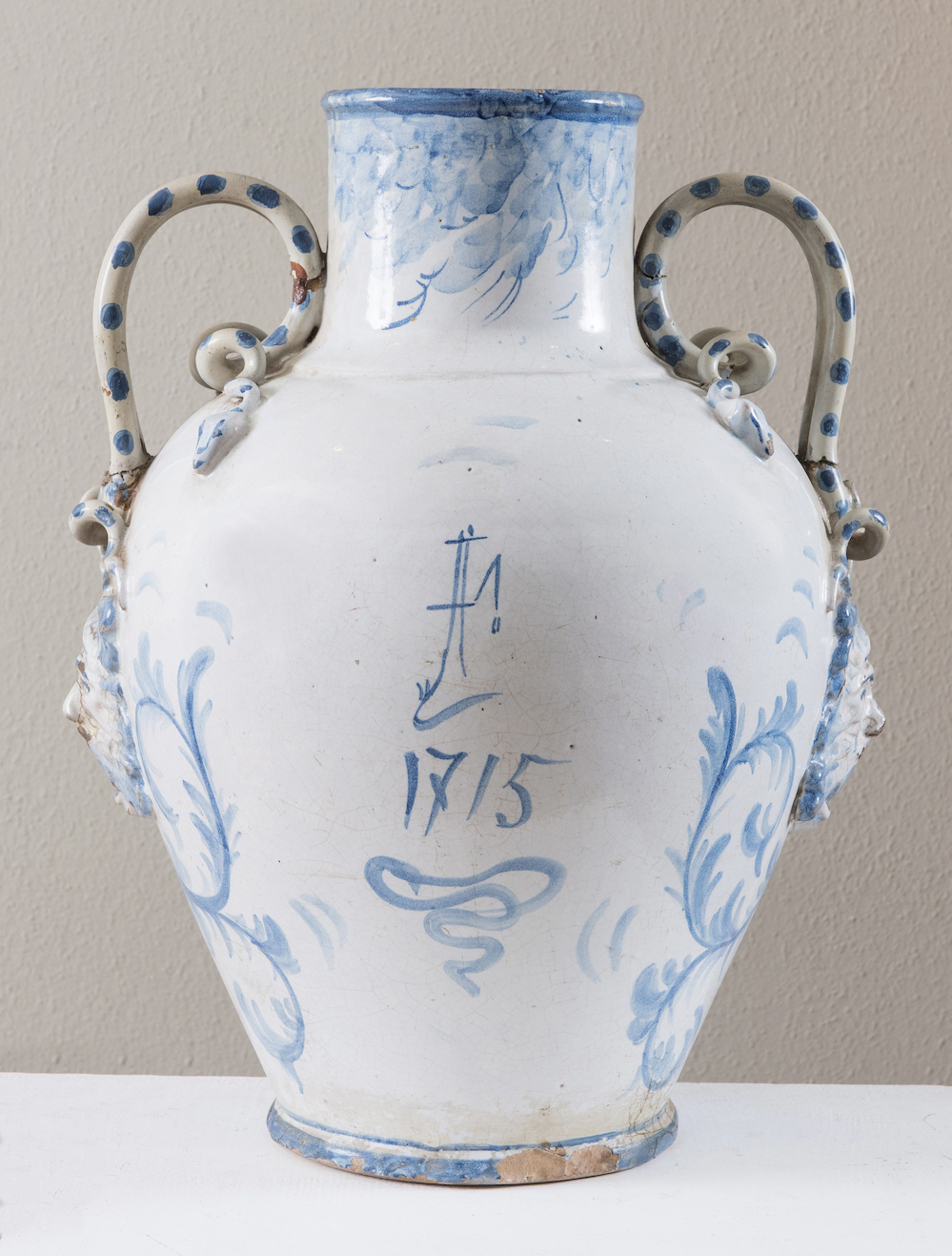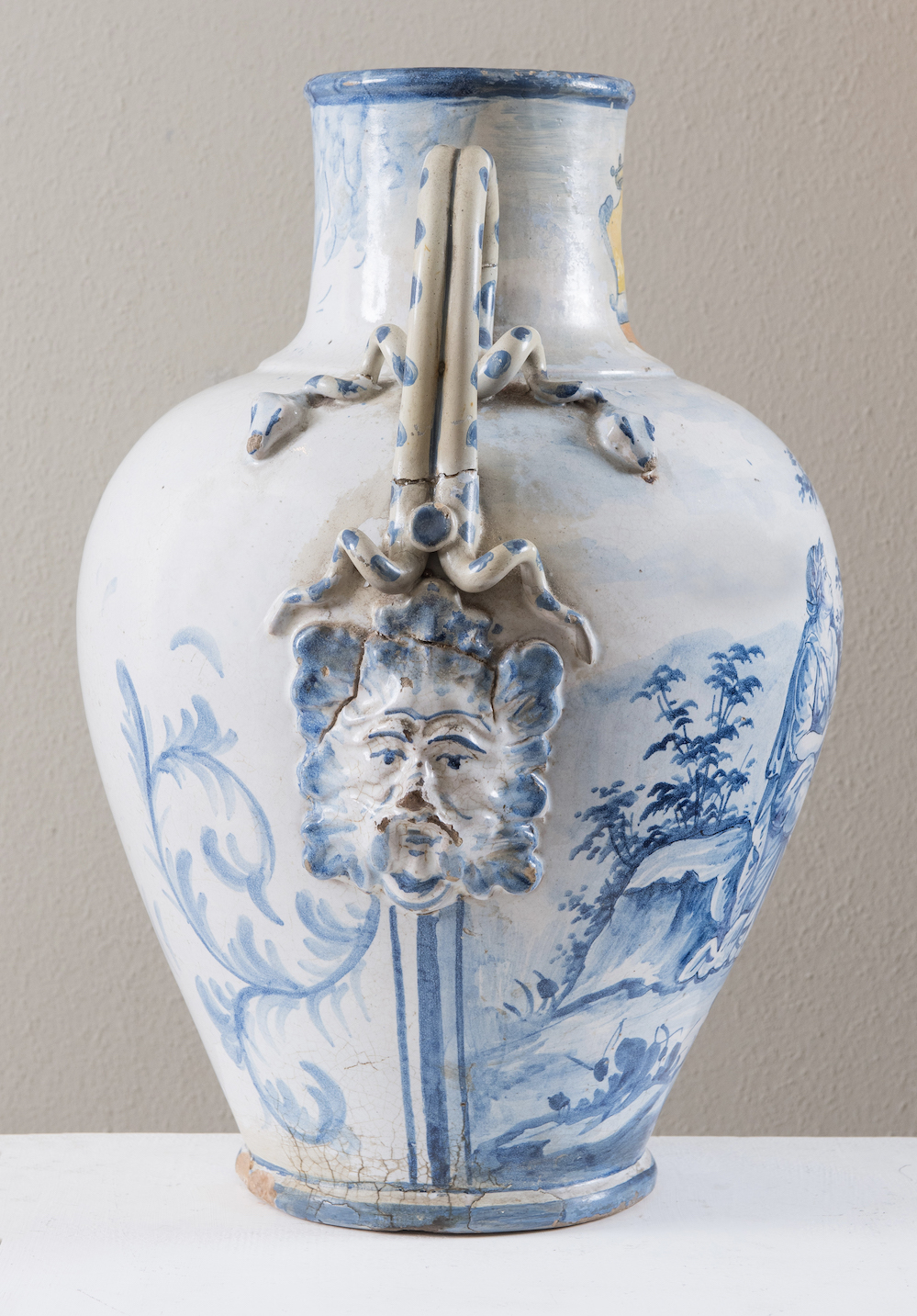 Lot 348 | Vaso in maiolica policroma. Savona, XVIII secolo. Cm 46x37x33. (Difetti...