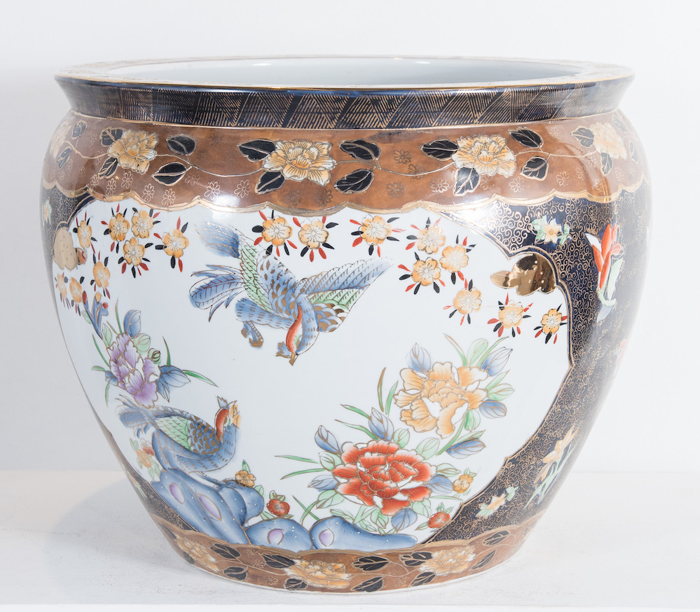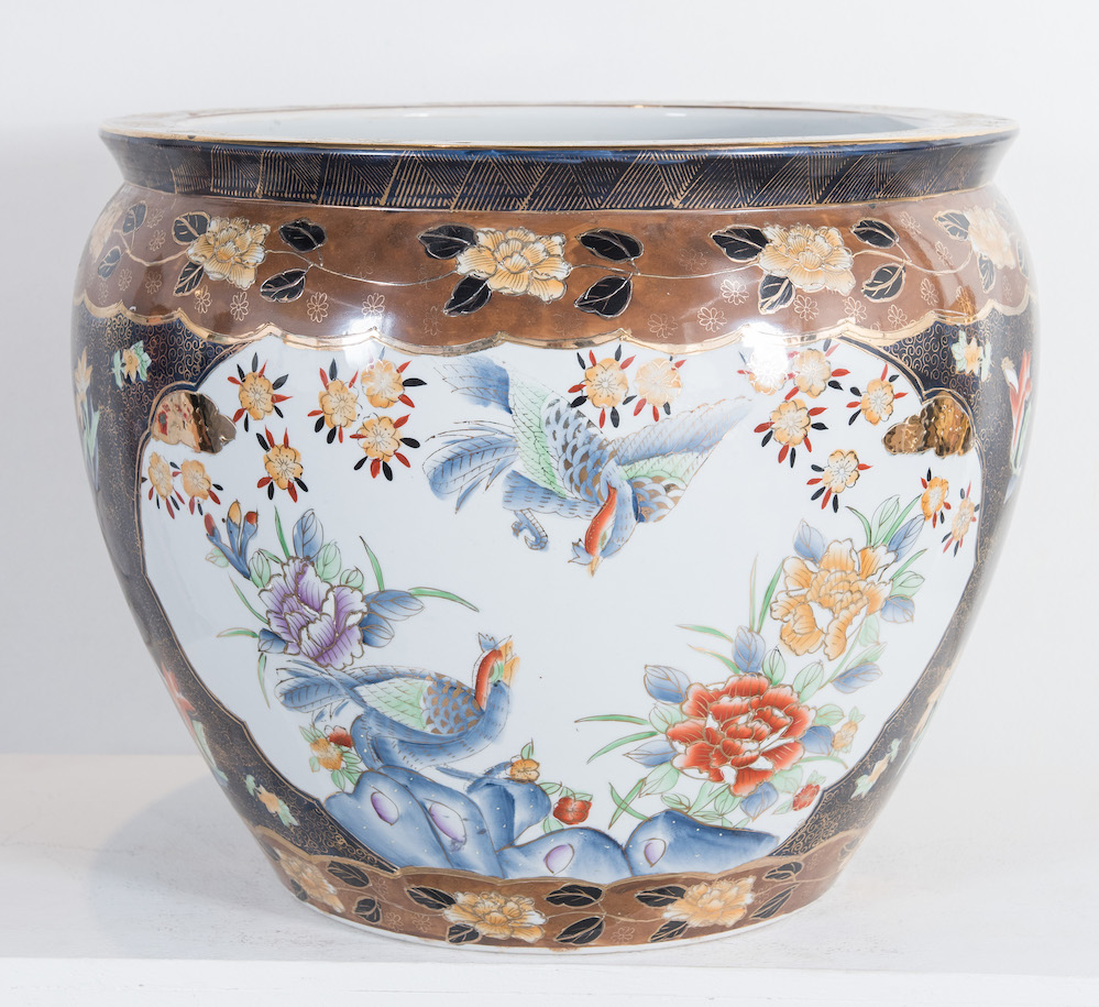 Lot 356 | Grande cachepot in porcellana. Cina, XX secolo. Reca scene di fiori e...