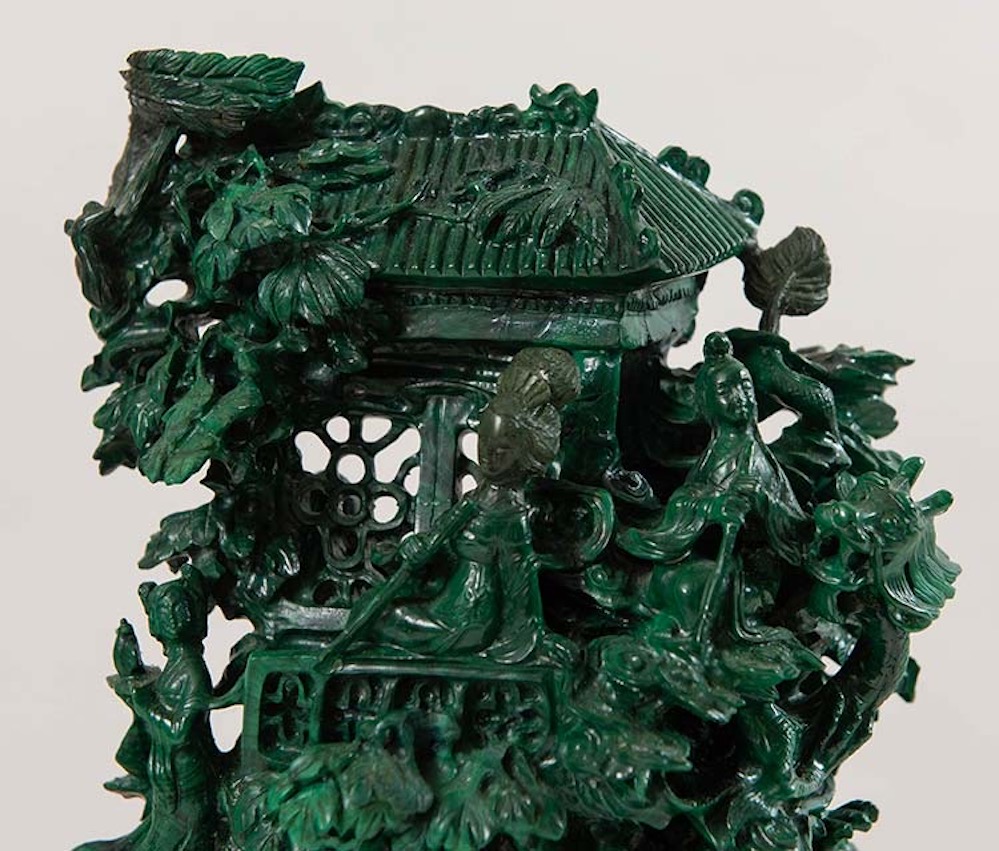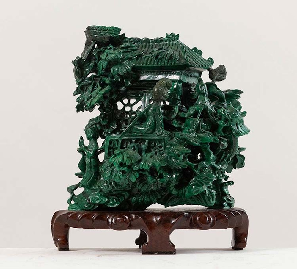 Lot 364 | Cina, fine XIX secolo (?). Scultura in malachite, in guisa di pagoda con...