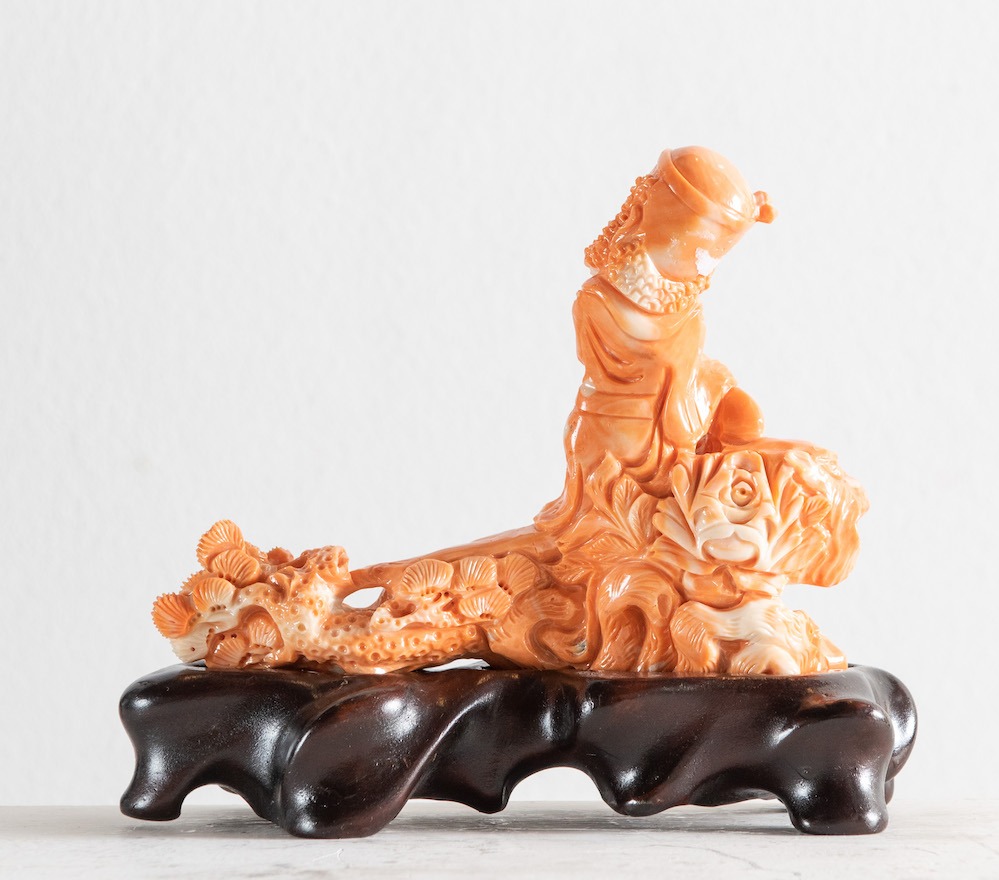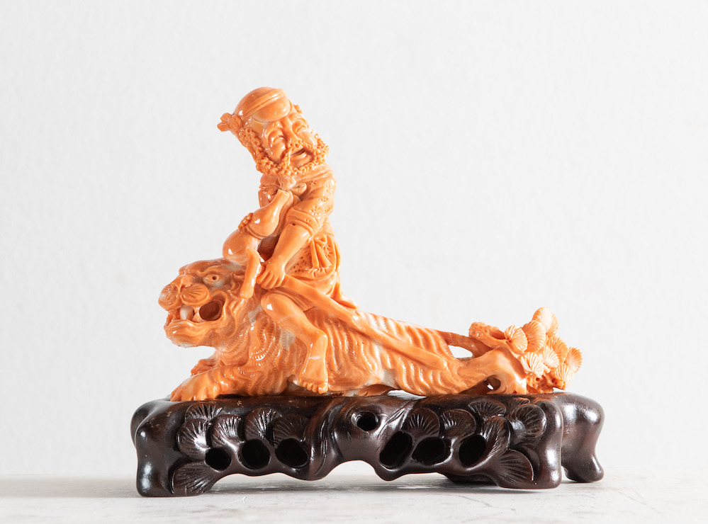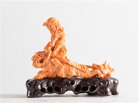 "Tigre". Scultura in corallo. Peso 424,40 gr. Scultura: cm 14x17,5x4.
