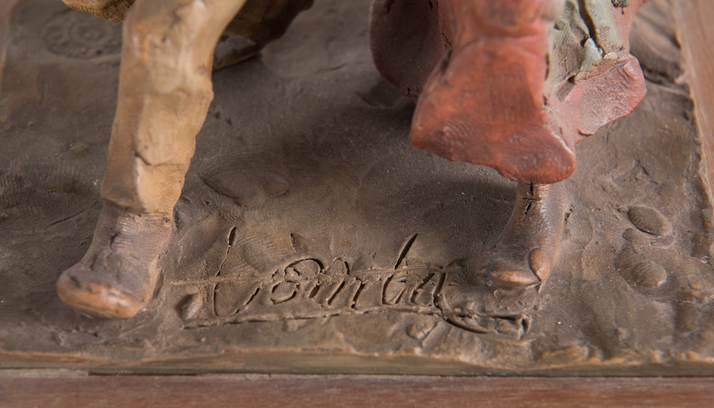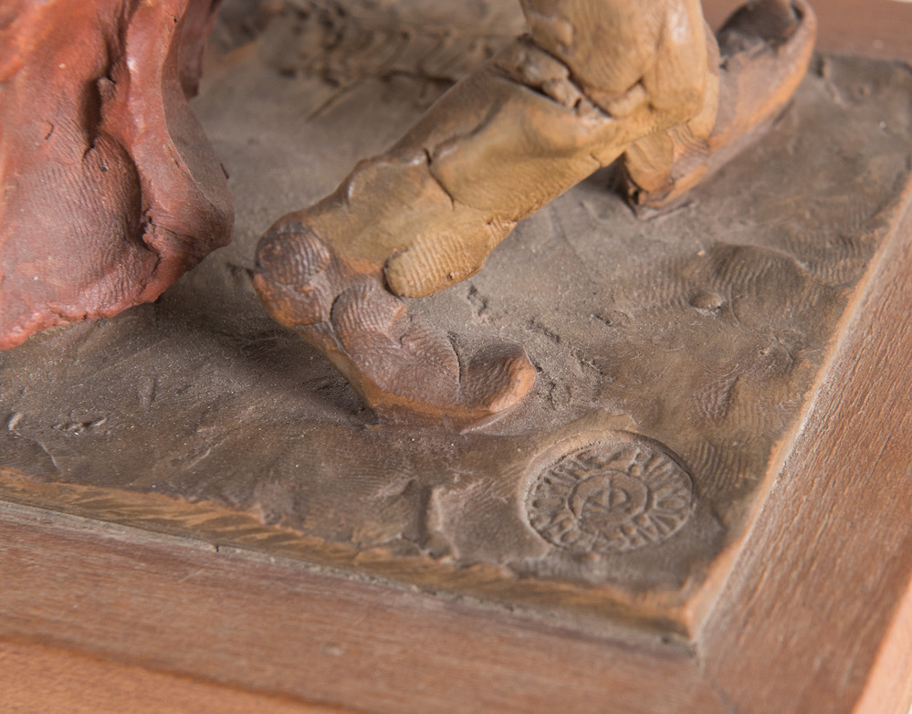CLETO TOMBA (Castel San Pietro Terme 1898 - Bologna 1987) "Ubriaco". Scultura in terracotta policroma. Cm 18x13x11. Opera firmata alla base Tomba. Reca marchio a fuoco CT. Provenienza: importante collezione privata, Bologna.