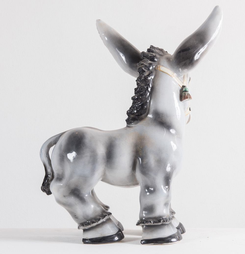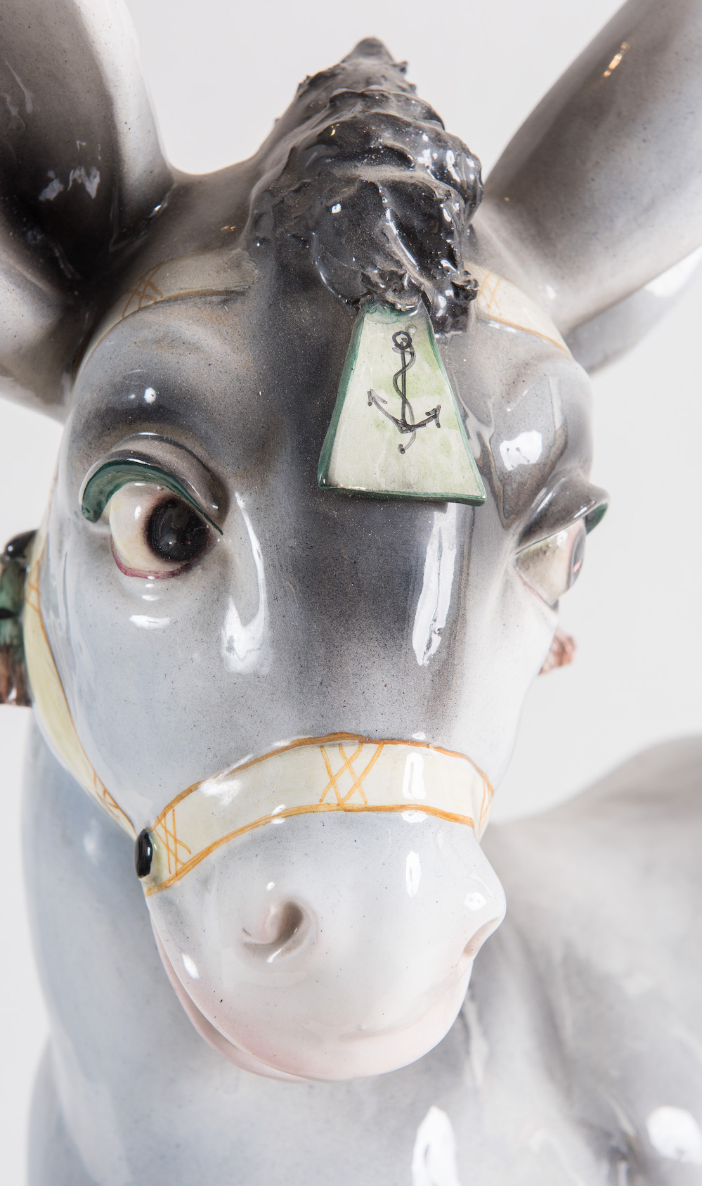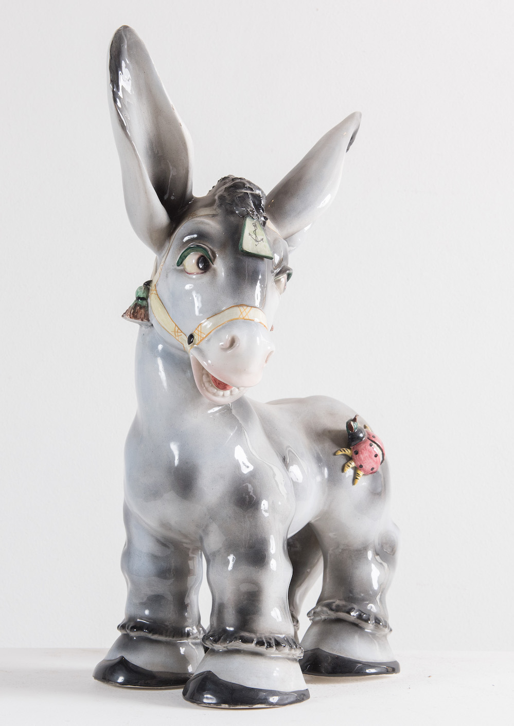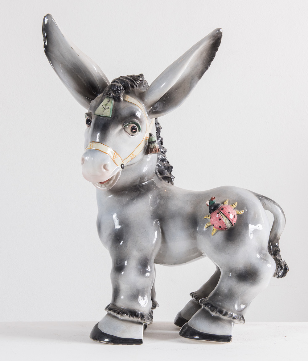 TARCISIO TOSIN, attr. "Asinello". Scultura in ceramica dipinta. Cm 55,5x42,5x22. Sotto la pancia reca scritta L.E 201 Italy.