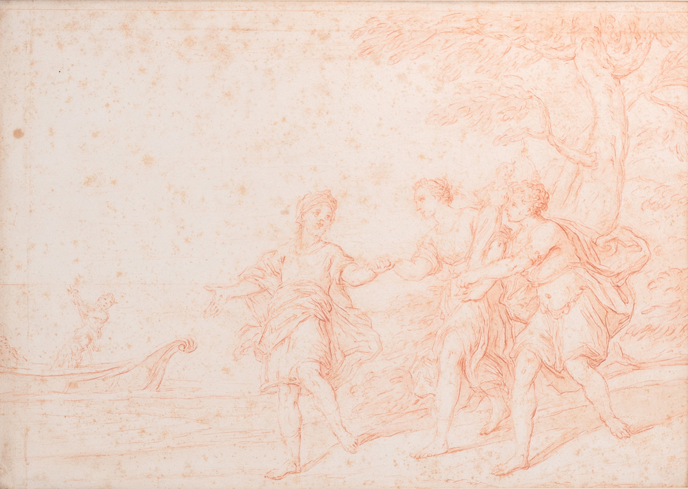Maestro del XVIII secolo. “Scena mitologica”. Sanguigna su carta. Cm 25,5x36,5.