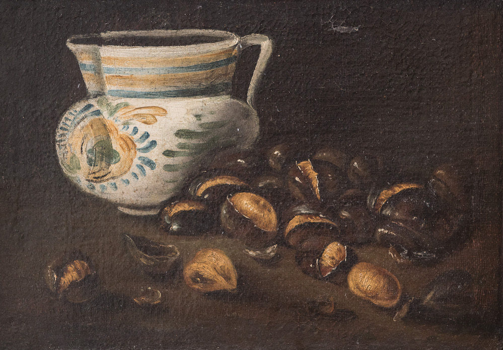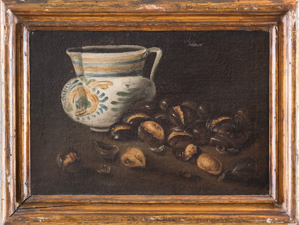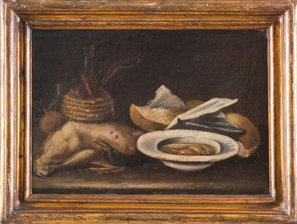 Maestro napoletano del XVIII secolo. Coppia di nature morte. Olio su tela. Cadauno di cm 23x33,5. La natura morta con l'anatra reca sul piatto la data 1789. In origine recano l’attribuzione a Tommaso Realfonso.