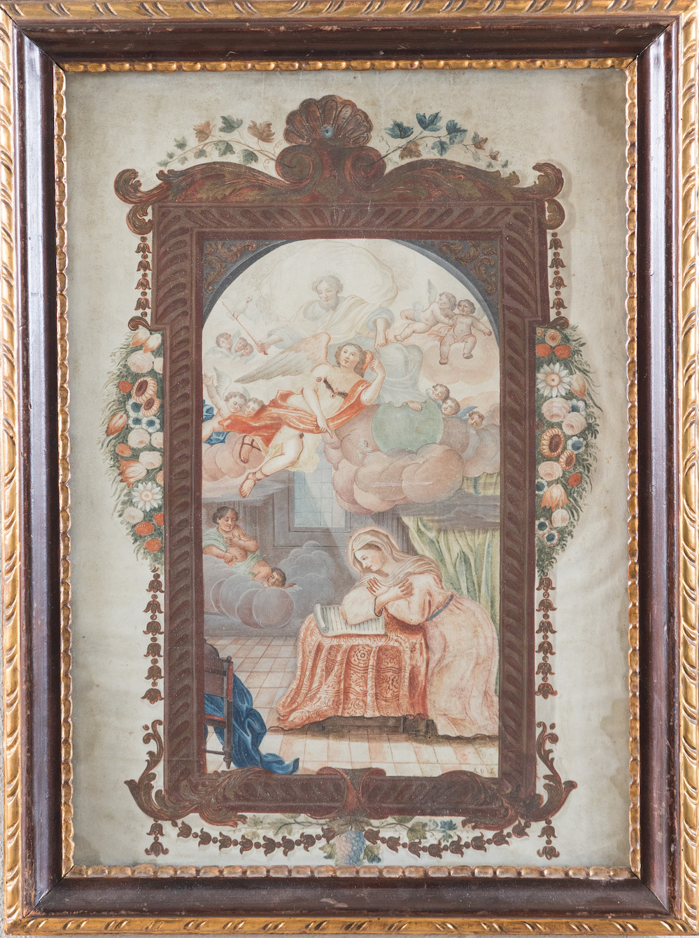 Maestro del XVIII secolo. “Annunciazione”. Tempera su pergamena. Cm 49x34,5.