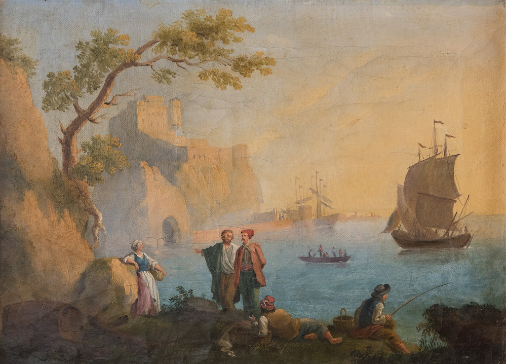 Maestro degli inizi del XIX secolo. Coppia di marine. Olio su tela. Cadauno di cm 34x47.