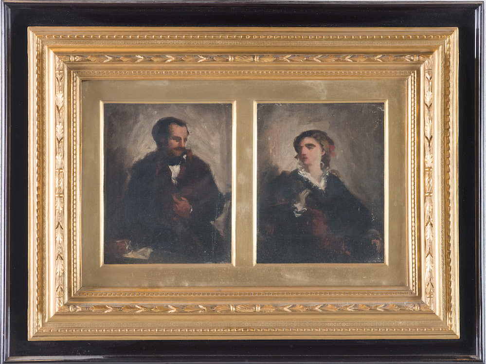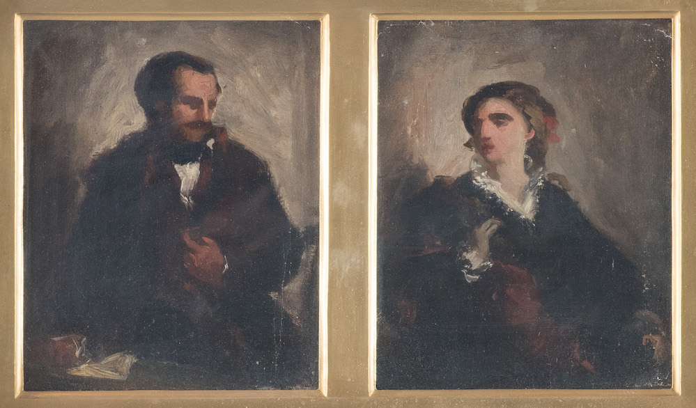 ANTONIO PUCINELLI (Castelfranco di sotto 1822 - Firenze 1897). Coppia di ritratti, 1897. Olio su tela. Cadauno di cm 18,5x15. Opere firmate e datate al retro Pucinelli Antonio 1897.