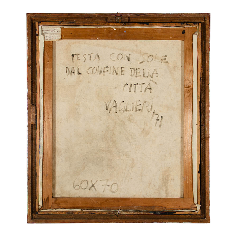 Firmato, datato e titolato al verso: Testa con sole dal confine della città Vaglieri ‘71