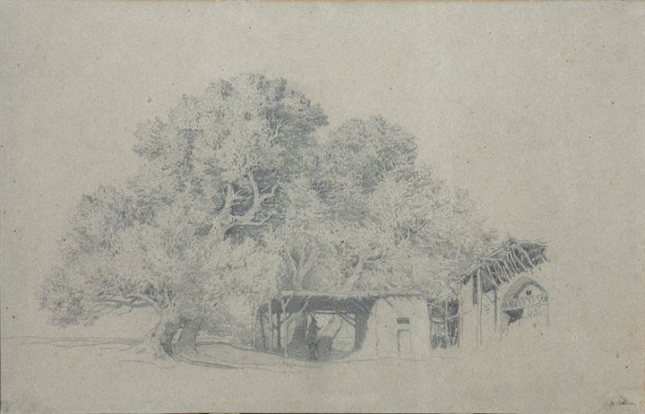 Bibl.: per un confronto si veda il disegno "Paese(Piccolo caffè sotto gli alberi)", pubblicato in