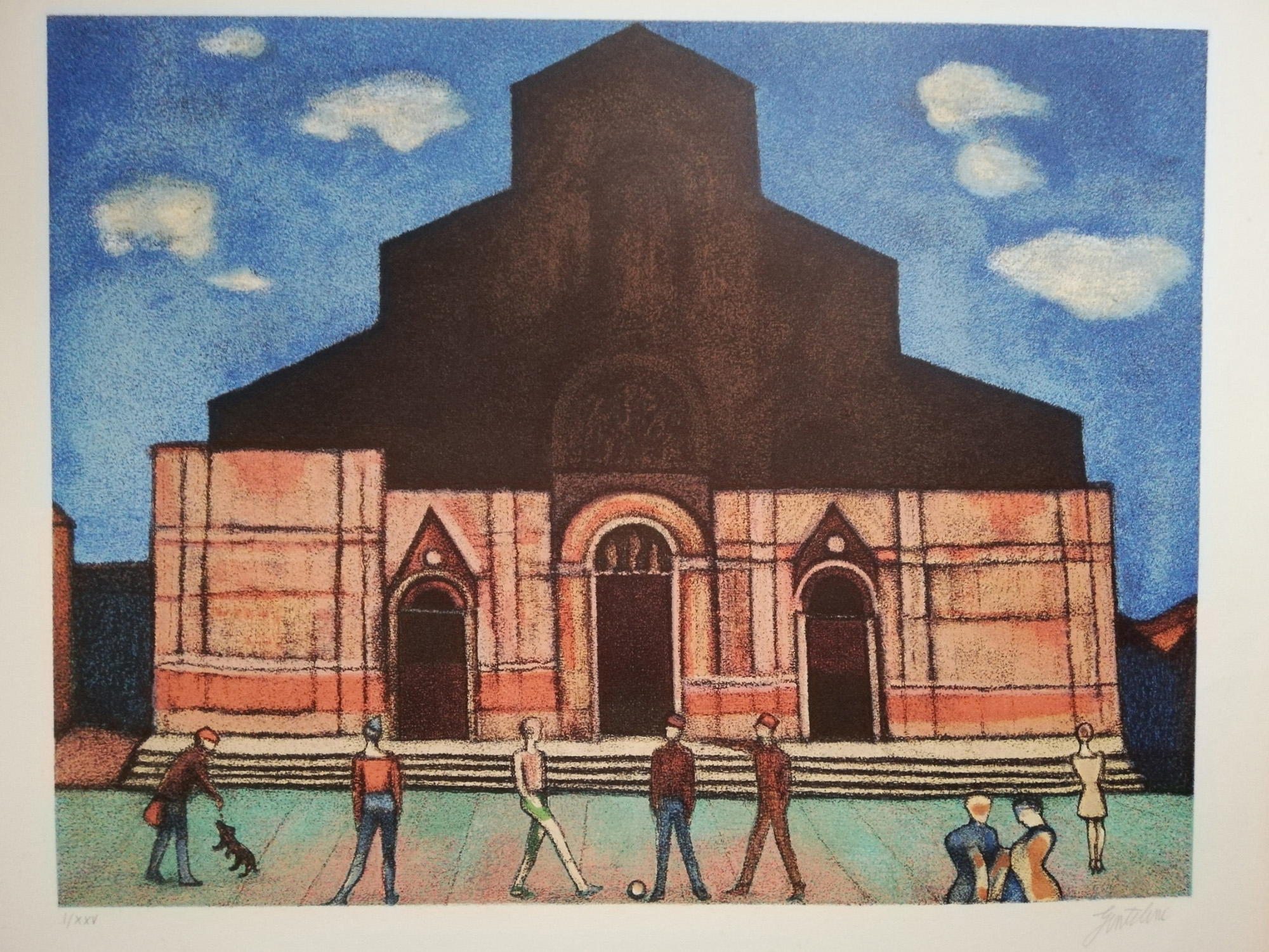 Franco Gentilini, "San Petronio", litografia, anni '80, 56x76 cm, Es. I/XXV, in cornice