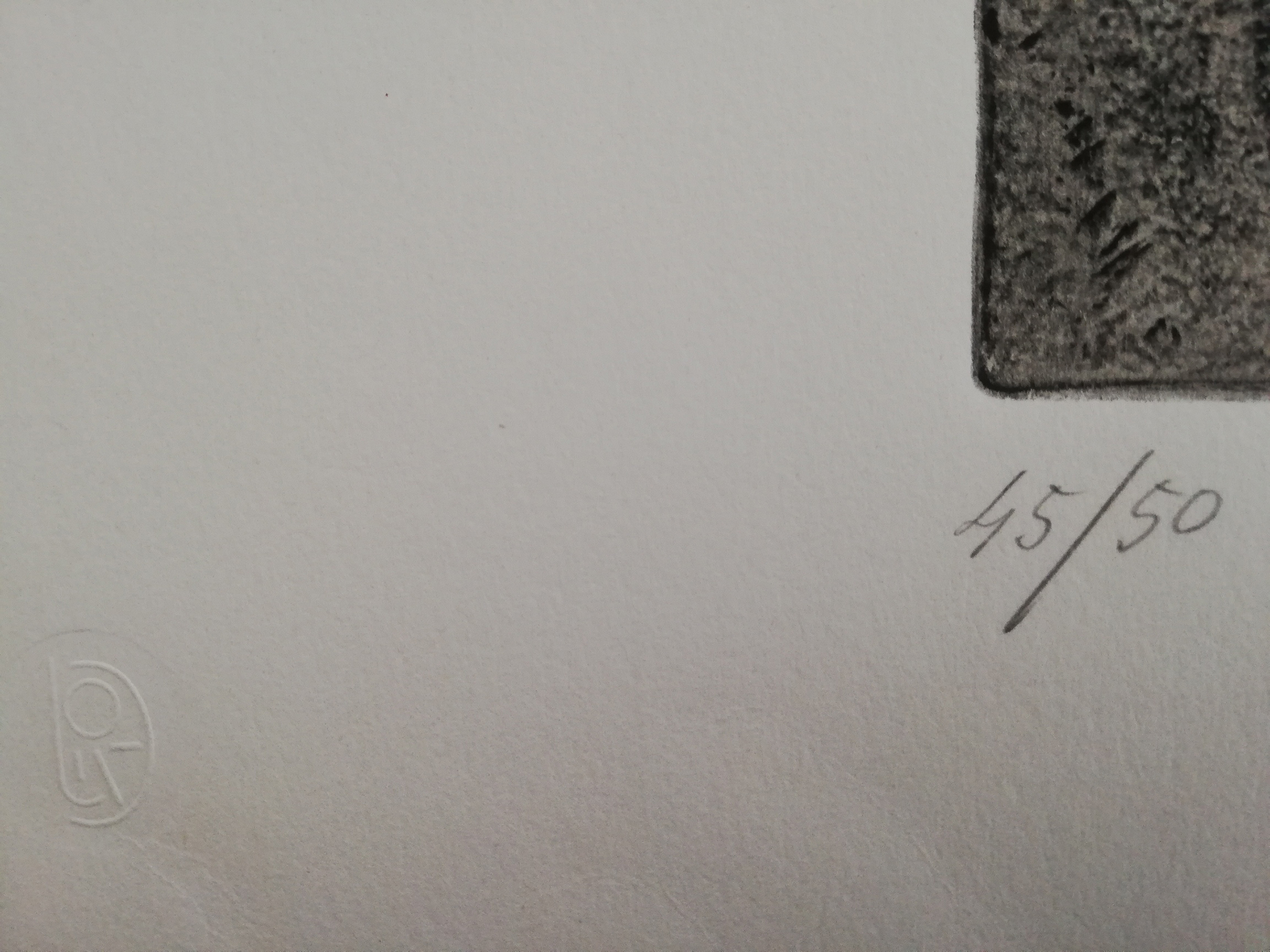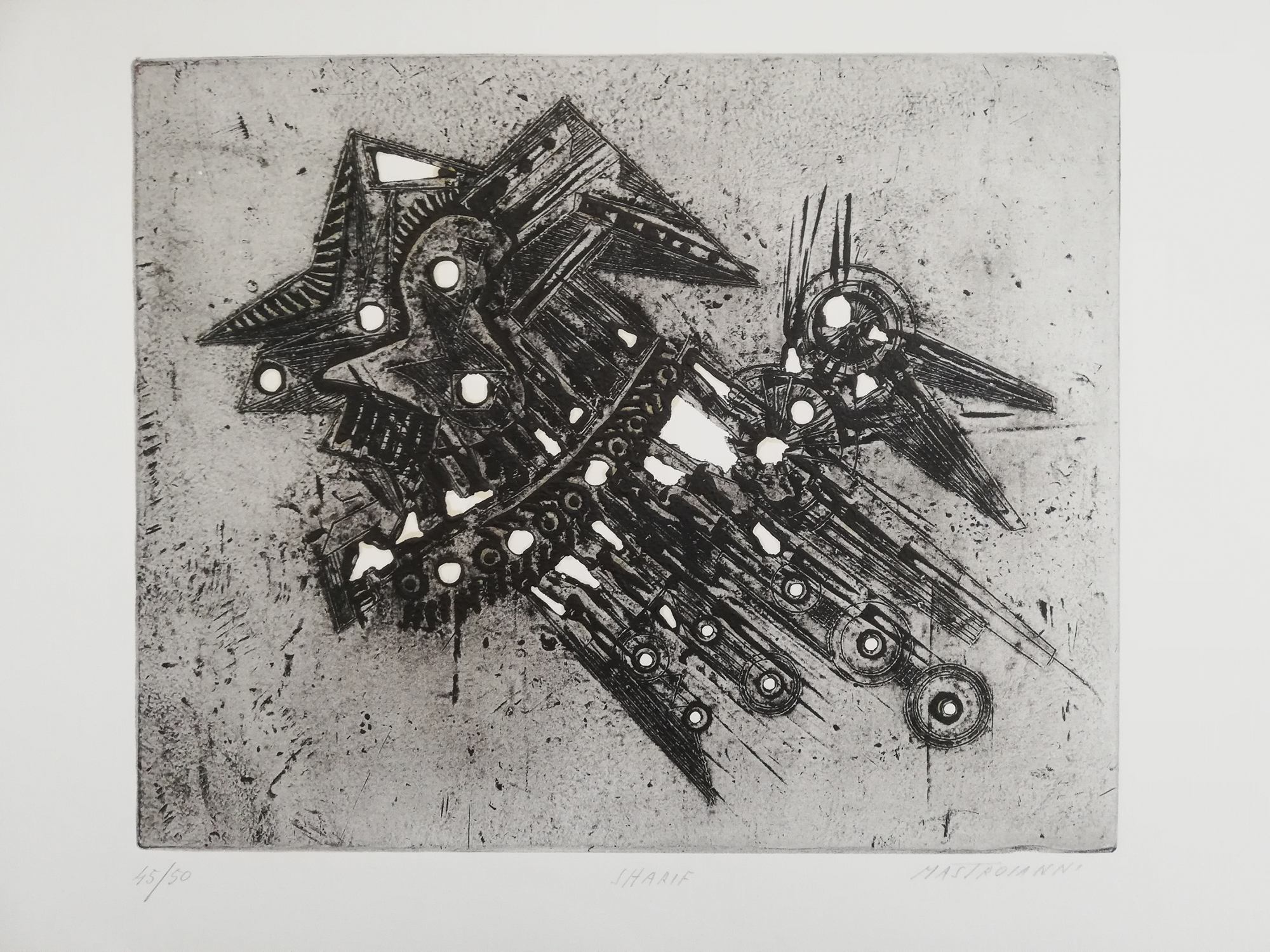 Umberto Mastroianni. "Sharif", 1969, incisione a rilievo su piombo, 50x70 cm, Es. 45/50, timbro a secco della Stamperia Romero, in cornice