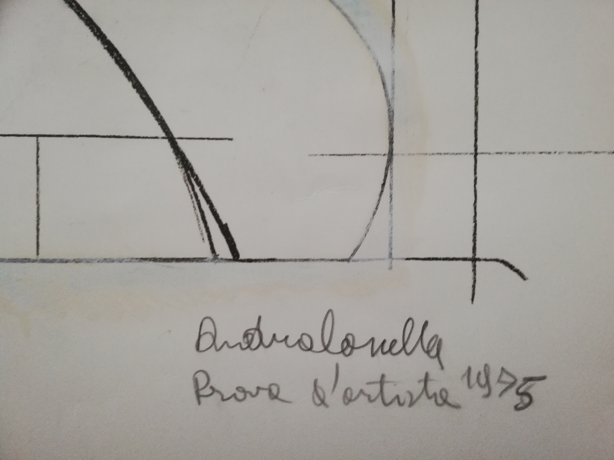 Andrea Cascella, "Progetto", 1975, litografia retouchè, 80x60 cm, Prova d'Artista, esemplare unico, ritoccato a tempera, in cornice