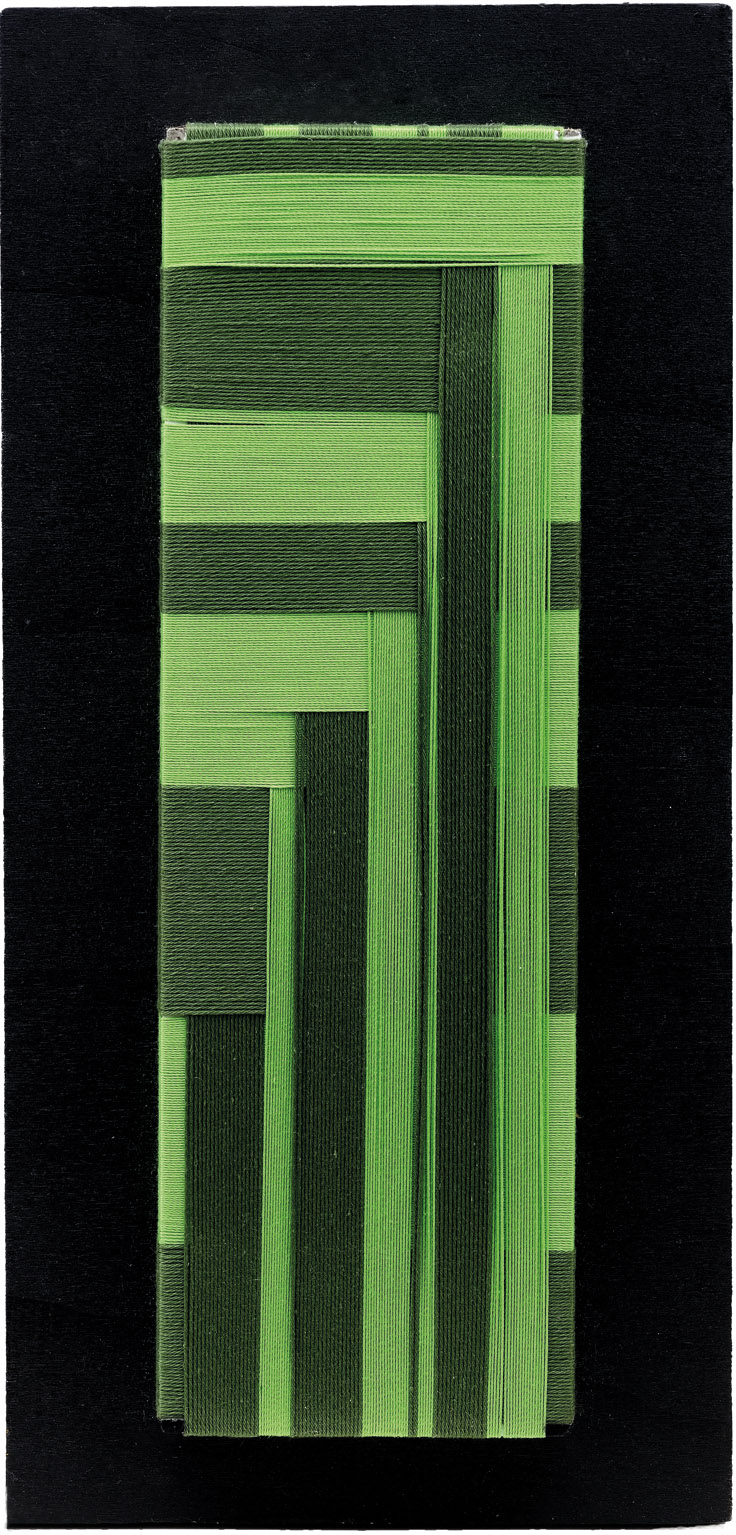 Carla Mura, "Costruzione 1", 2006, filo su legno, 41x19 cm, firmato sul retro