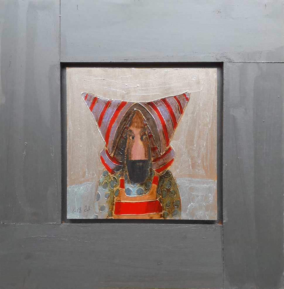 Mario Serra, "Personaggio onirico", 2015, tecnica mista su tavola, 24x24 cm