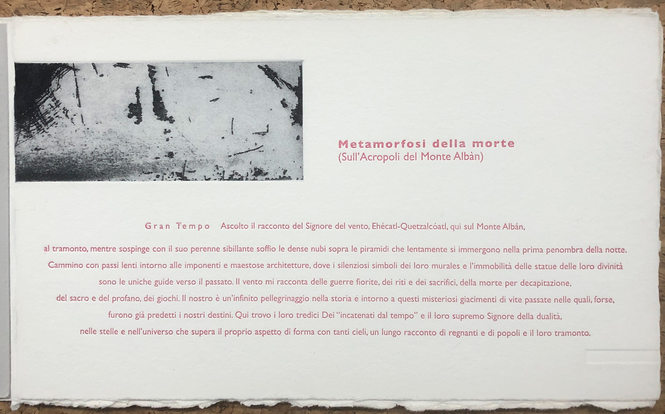 Edizione recante testo di Zlata Maltaric illustrato da un cliché verre su carta Aetna e da tre acqueforti di Mario Benedetti (una delle quali su doppia pagina)