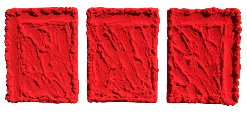 Pino PINELLI Catania 1938 Pittura R., 2008 Tecnica mista cm 30 X 76 La misura si riferisce al trittico Bibliografia ‘Pino Pinelli – Pittura spaziale’, a cura di C. Cerritelli, Laura & Rino Costa Arte Contemporanea, Valenza, 2008, p. 29 Titolo, firma, data ‘Pittura R, Pino Pinelli, Milano 2008, opera di n° 3 elementi’ (al retro)