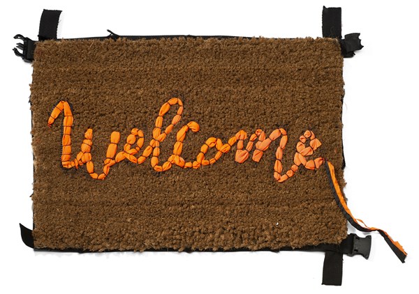 Lot 172 | Banksy "Welcome Mat" 2019 tappeto fatto a mano con giubbotti di salvataggio dei