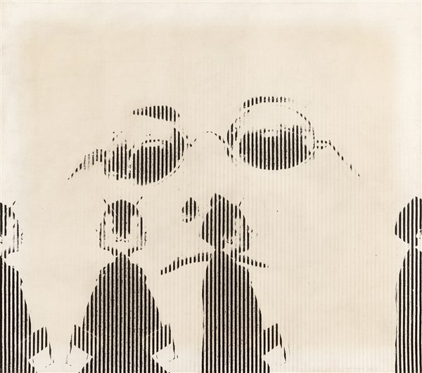 Aldo Tagliaferro "Natura morta con Donna + ragazzo + retino" 1971 tela emulsiona