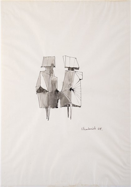 Lynn Chadwick "Two Watchers XI" 1968 inchiostro su carta cm 48,5x34,3 Firmato e