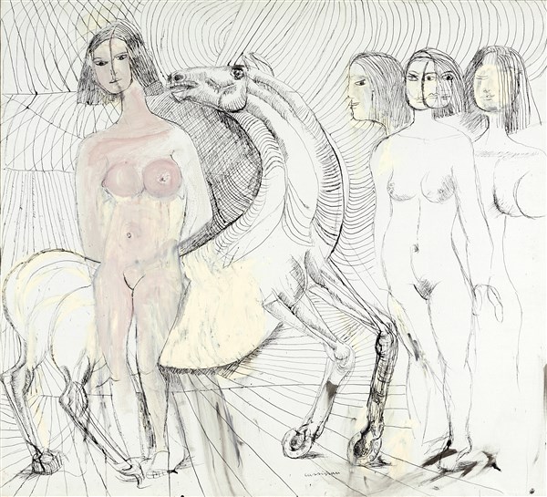Lot 212 | Bruno Cassinari "Figure con cavallo" 1987 china e tempera su tela cm 100x110 Fir