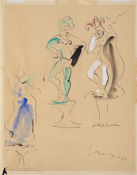 Lucio Fontana "Studi per maschere" 1952 china e acquerello su carta cm 28x22,3 F
