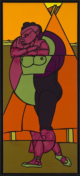 Valerio Adami "In tenda" 2000 acrilico su tela cm 145x63 Firmato e titolato al r