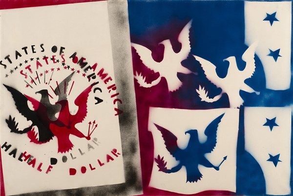 Franco Angeli "Senza titolo" prima metà anni '70 smalto su tela cm 100x150 Firma