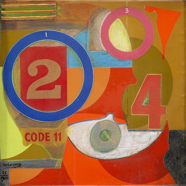 Edouard Lèon Thèodore Mesens "1,2,3,4, code 11... et puis?" 1964 collage e tecni