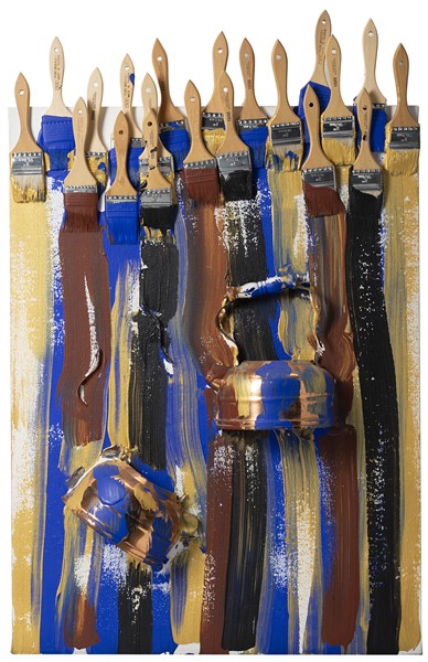Arman "Brush strokes" 2001accumulazione di pennelli e teiera, acrilico su tela