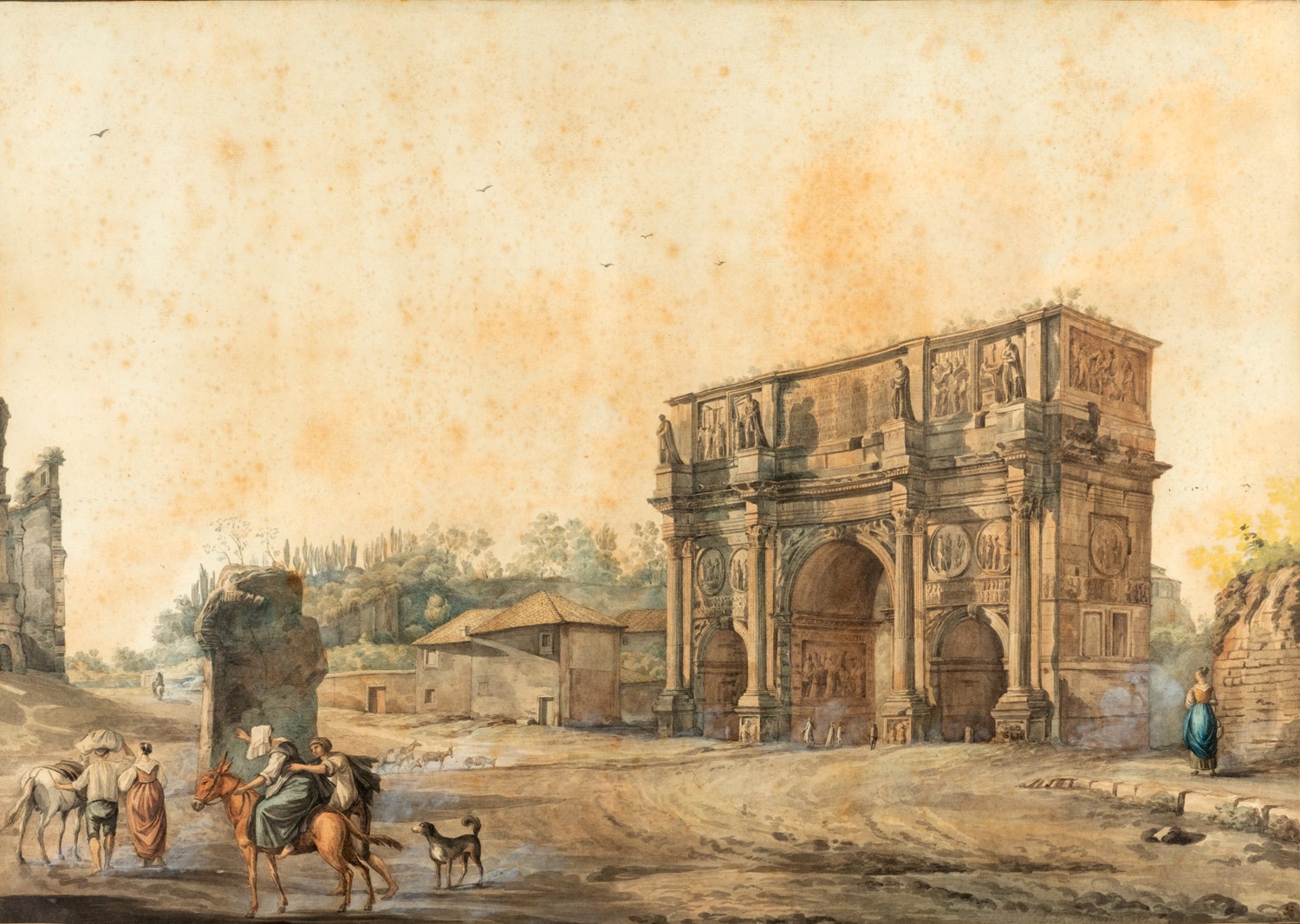 Abraham-Louis-Rodolphe Ducros (Yverdon 1748-Losanna 1810) - Veduta dell'Arco di Costantino a Roma