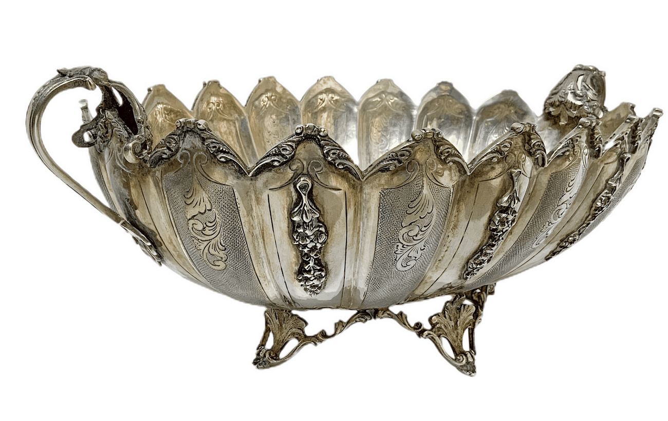 Centrotavola - Ciatta in argento 800, anni 30 Italia. Gr 856. H cm 12x37