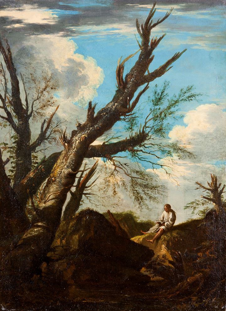 ROSA SALVATOR Napoli 1615 - 1673 Roma "Filosofo nel bosco" 74x53 olio su tela...