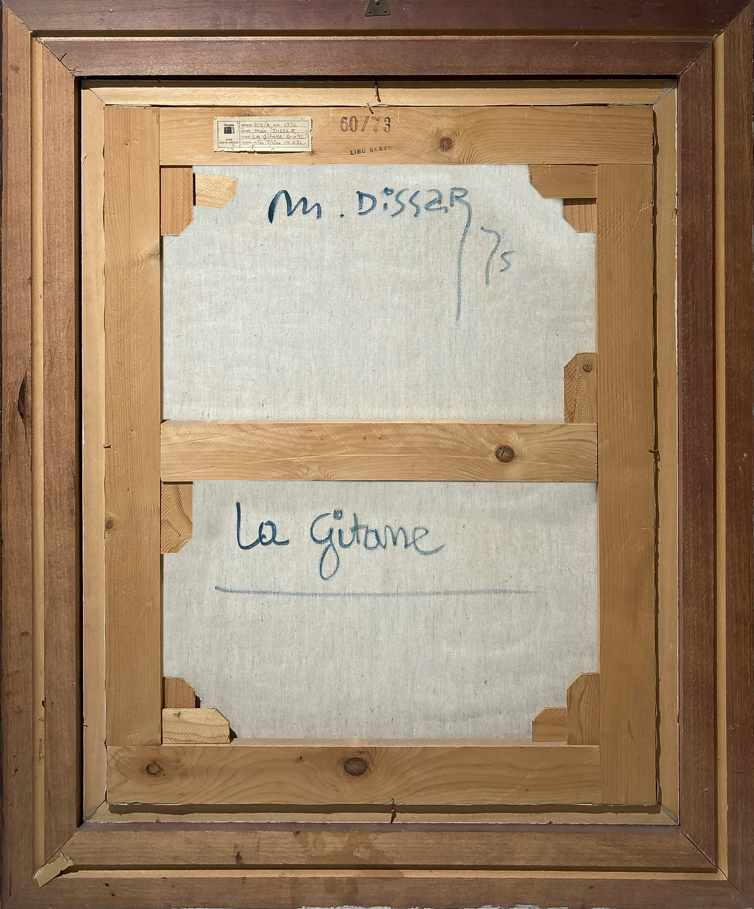 Max Dissar(1908-1993),dipinto ad olio su tela raffigurante “la gitana”, firmato in basso a sinistra Max Dissar. Cm 60x73, in cornice cm 95x82